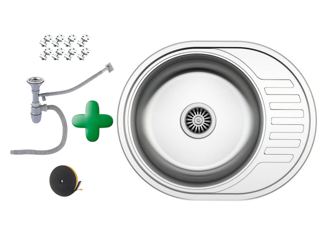 Edelstahl Einbauspüle 57 cm – Stilvoll, Praktisch & Kompakt Beschreibung: Edelstahl Einbauspüle Rund 57x45...