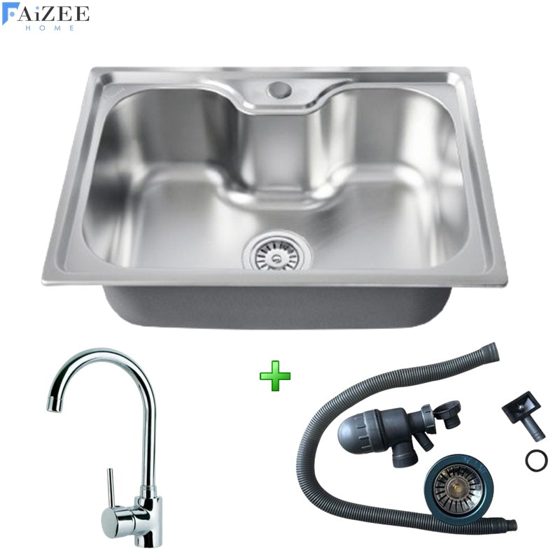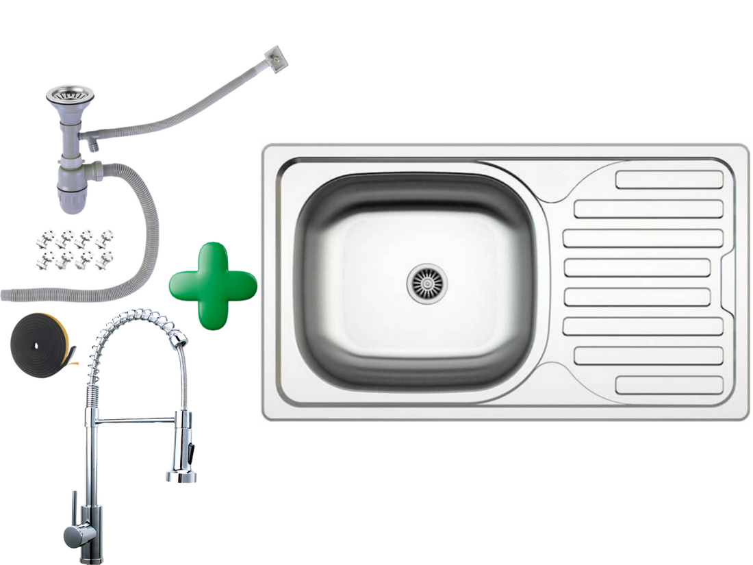 Edelstahlspüle 76x44 + Spiralarmatur + Siphon