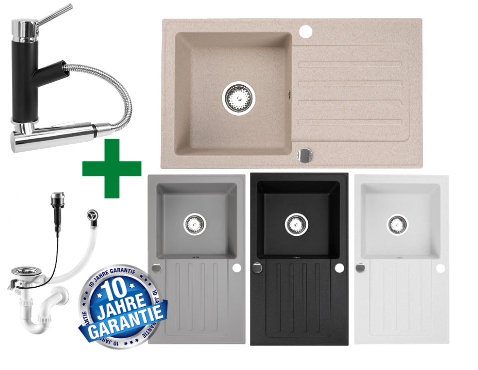 Granitspüle 76x44 + Armatur Cado – inkl. Siphon-Set