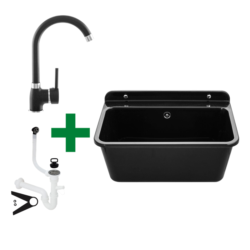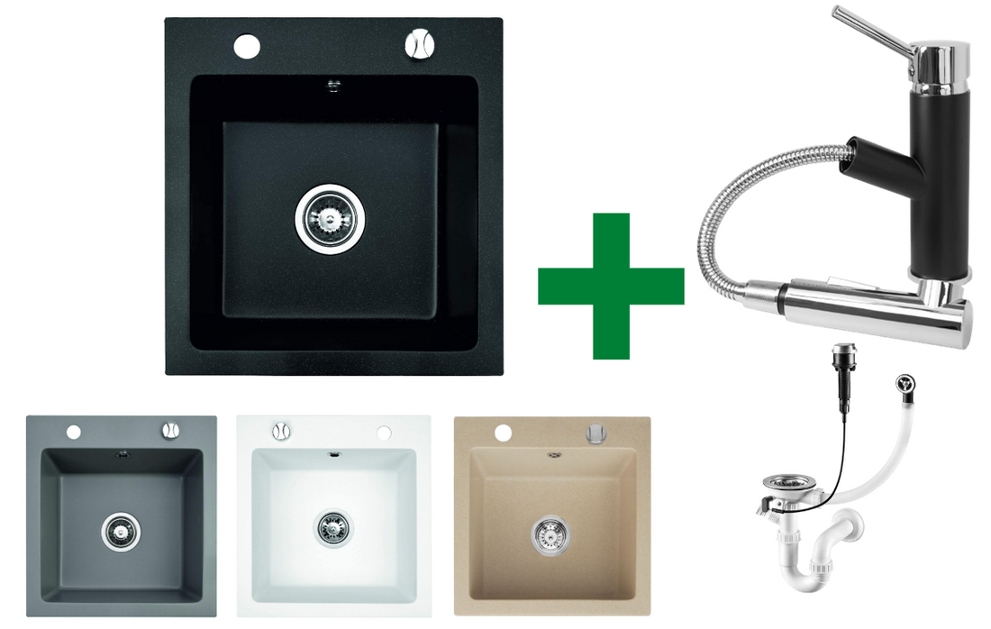 Granitspüle 48x50 + Armatur Cado – inkl. Siphon-Set