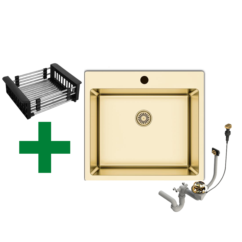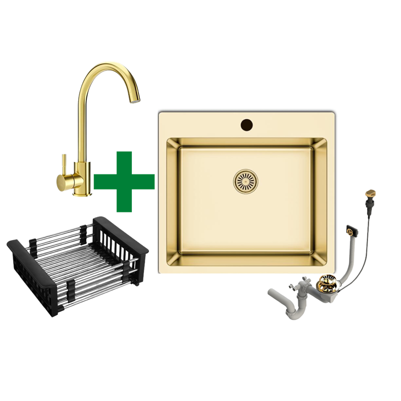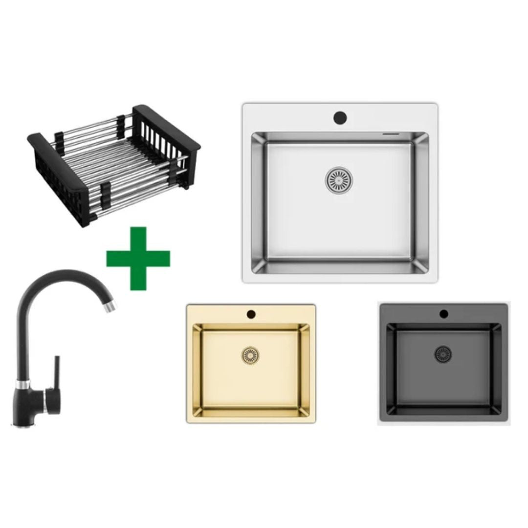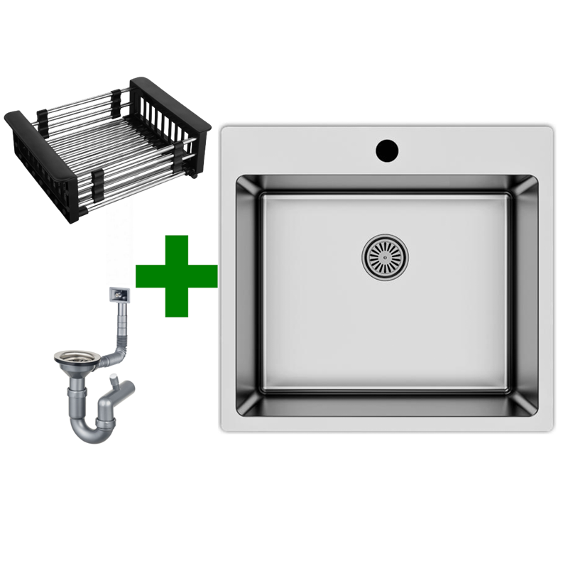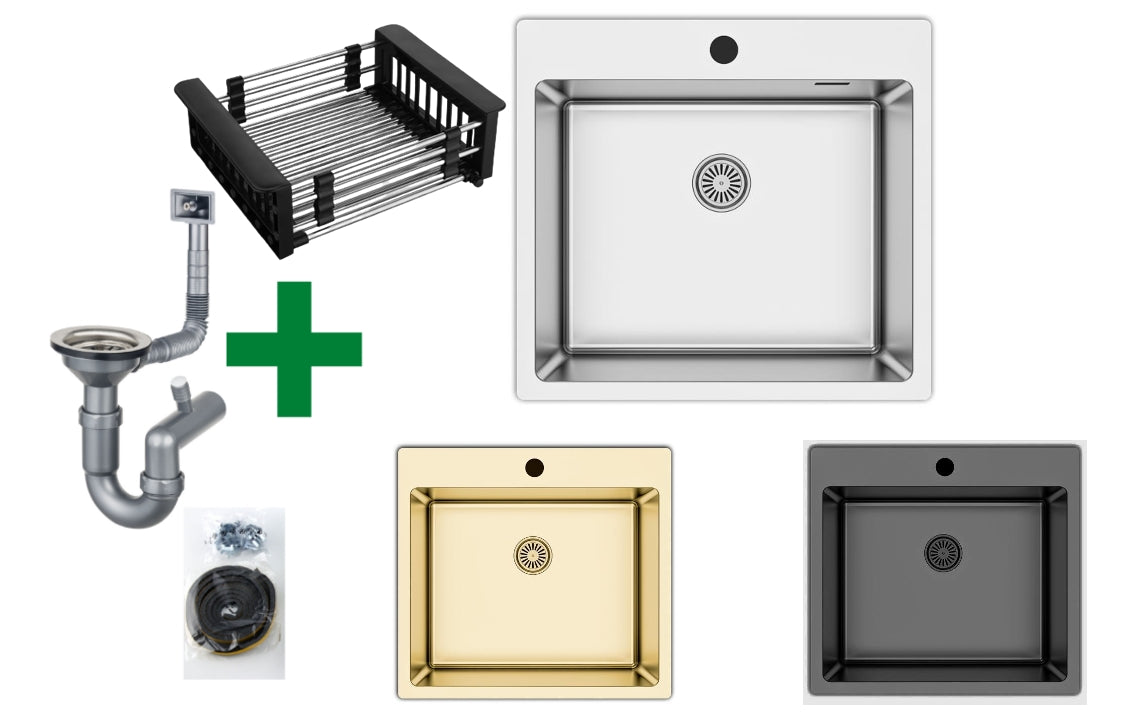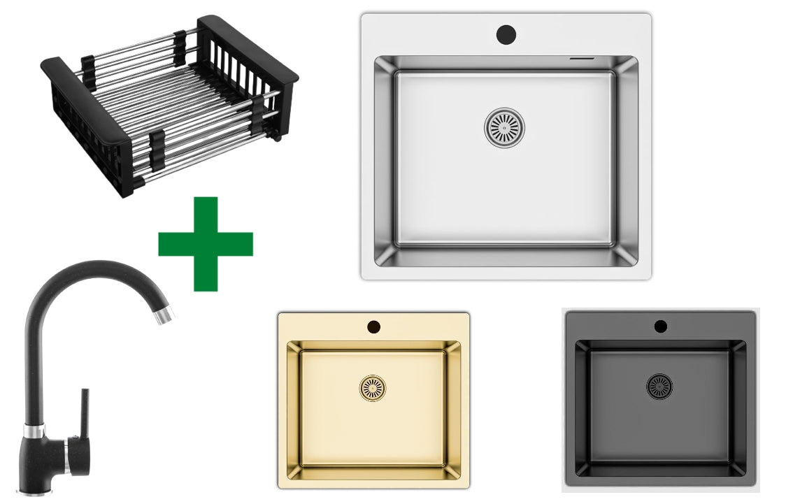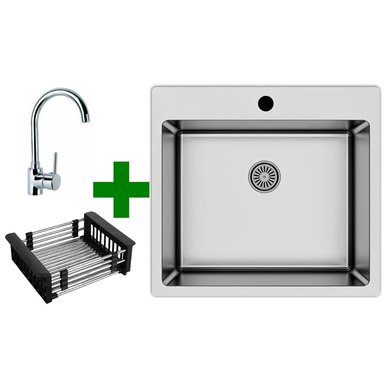 Edelstahlspüle 50,5x55 + Spülkorb – mit/ohne Armatur