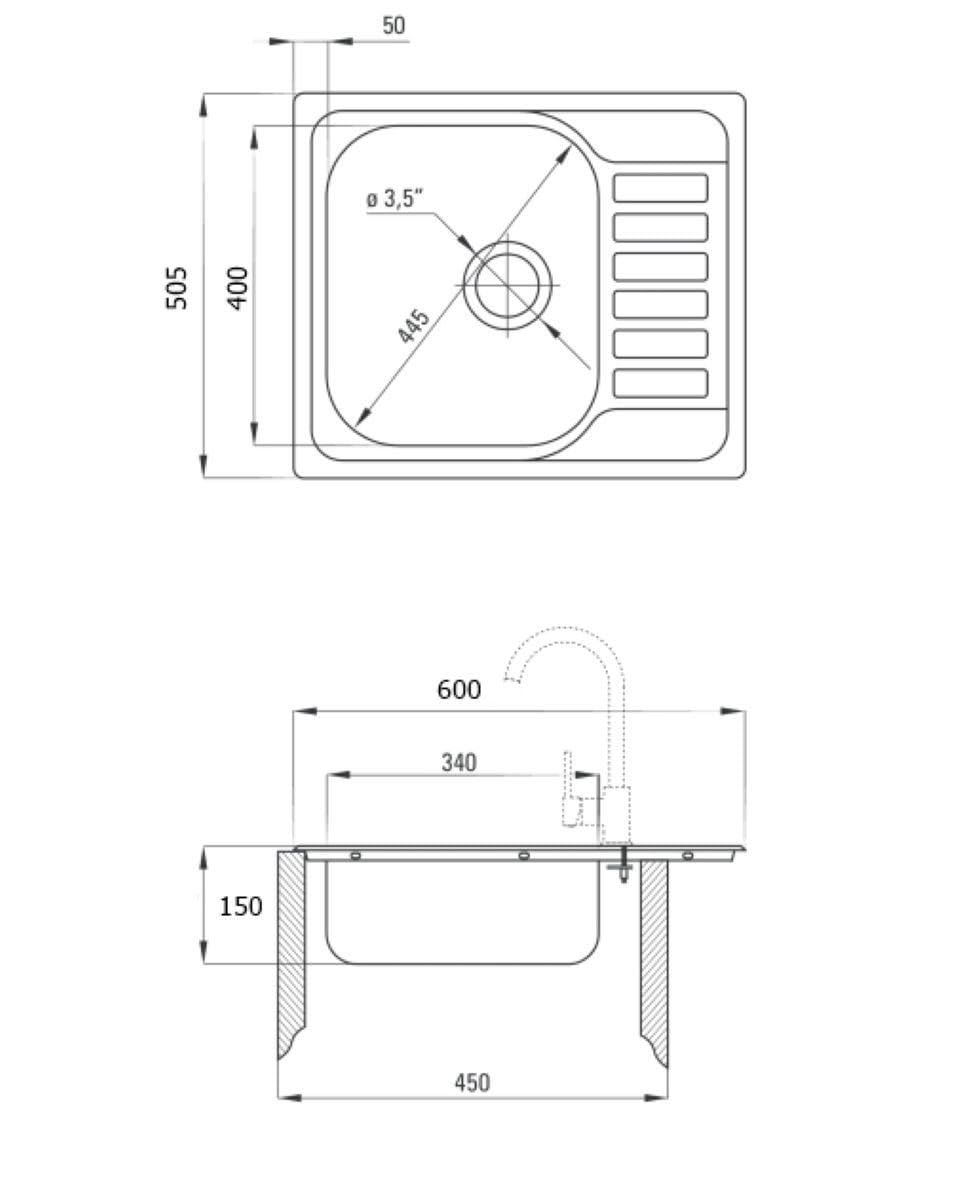 • 60 × 50,5 cm eckig – für größere Küchen