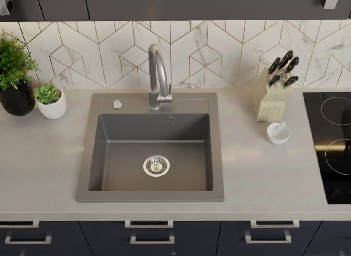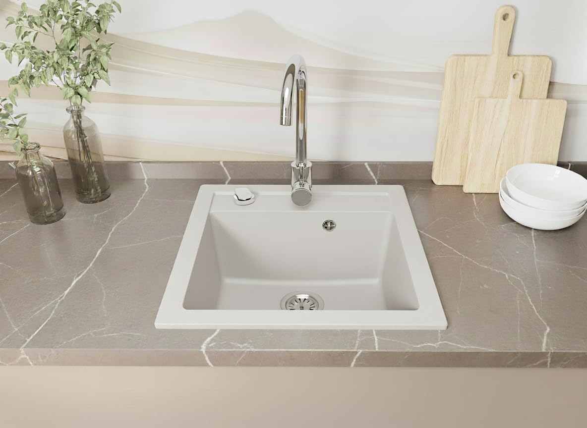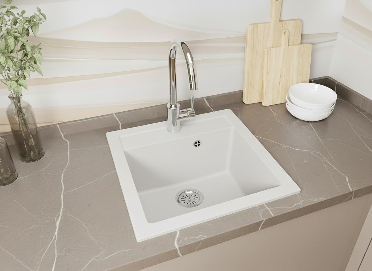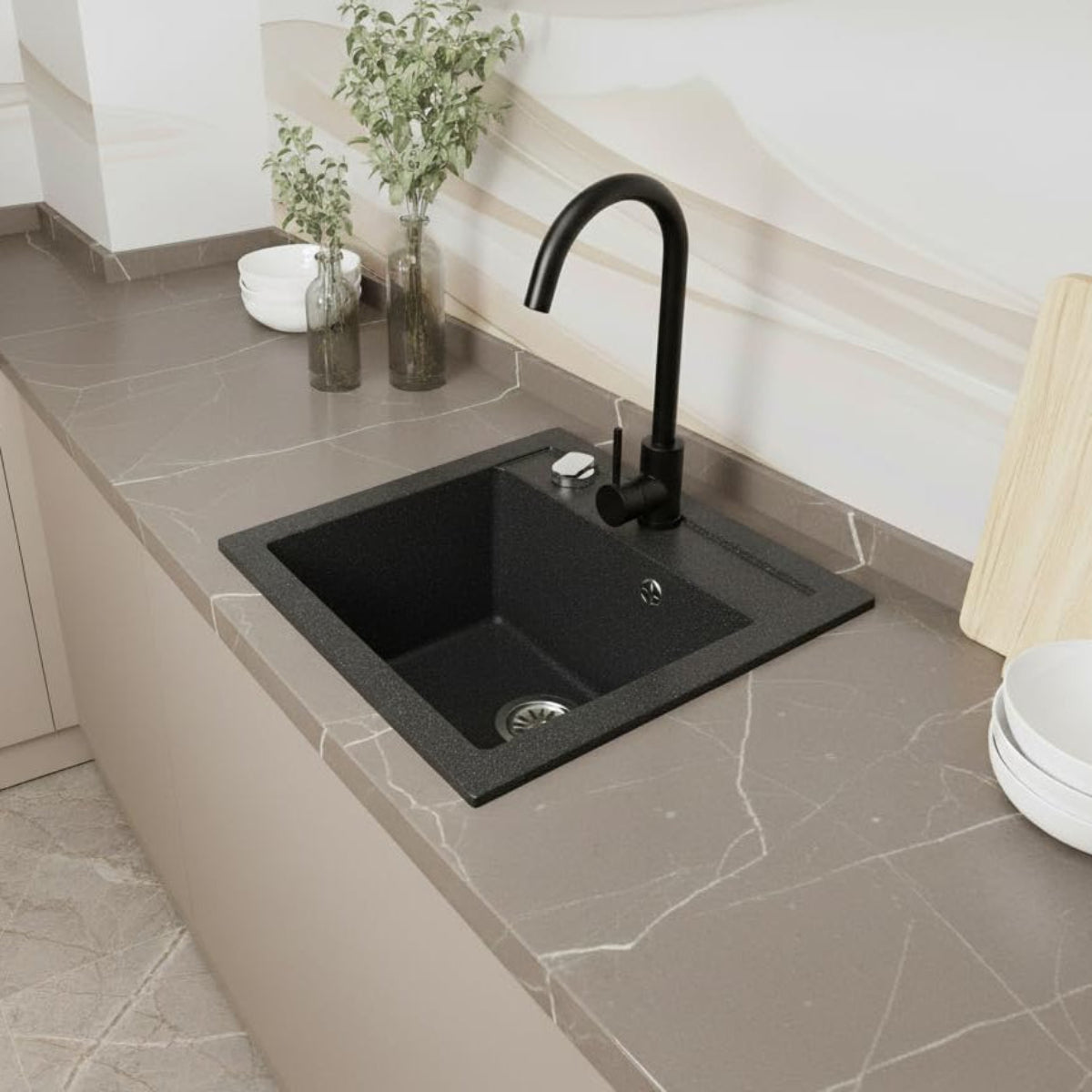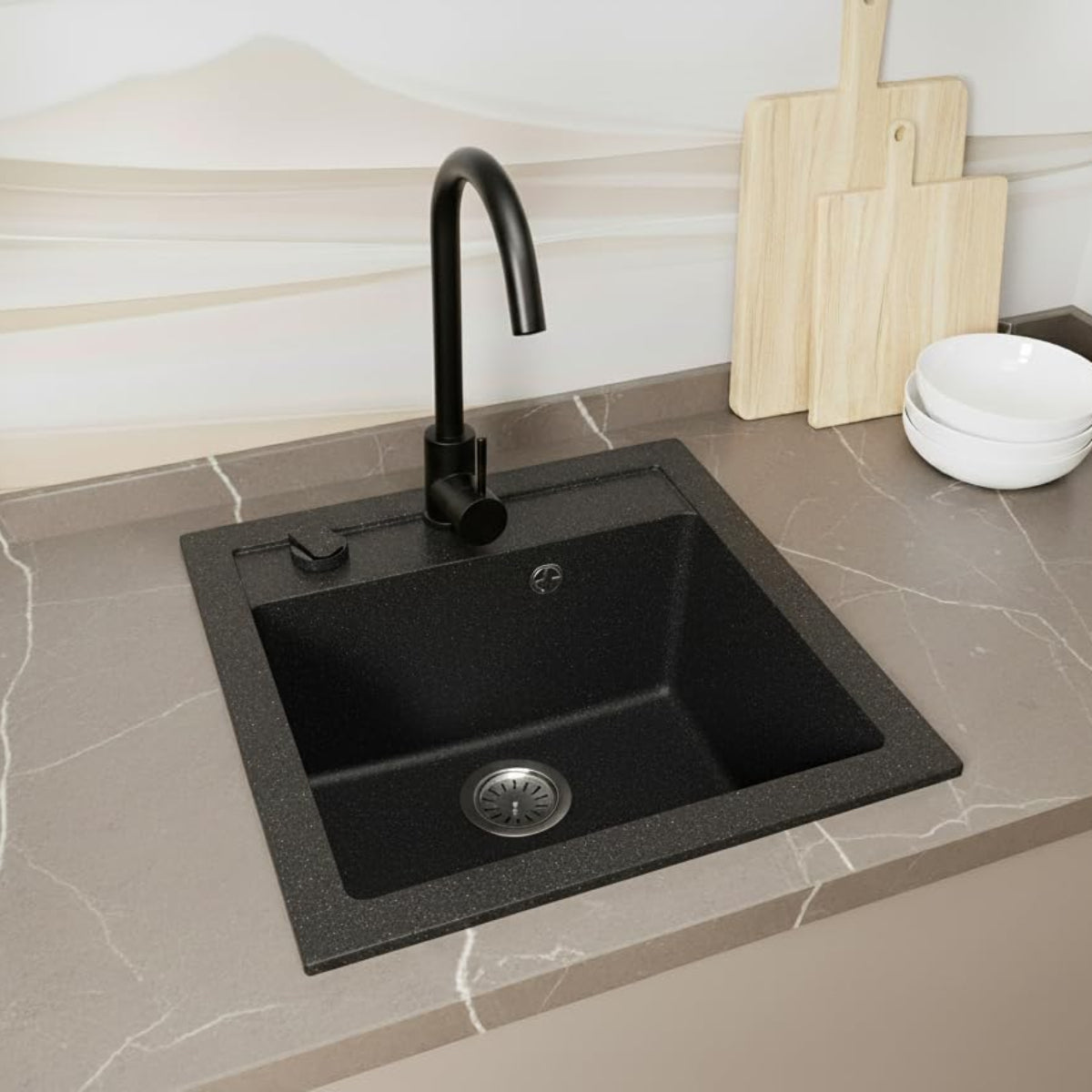 Die Milano Granit Einbauspüle 49x52 cm vereint modernes Design mit hoher Funktionalität. Das kompakte, eckige Spülbecken eignet sich ideal für moderne Küchen und passt perfekt in Unterschränke ab 45 cm.