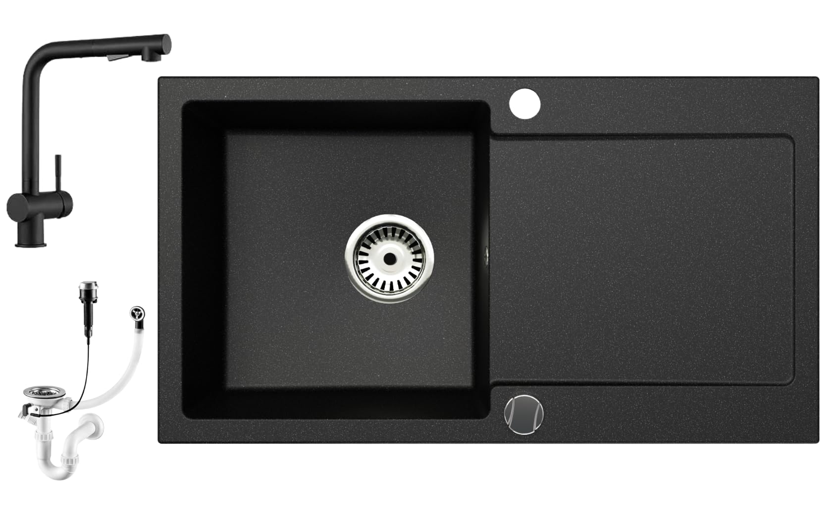 Granitspüle Element 90x50 cm mit Abtropffläche inkl. Armatur & Siphon-Set