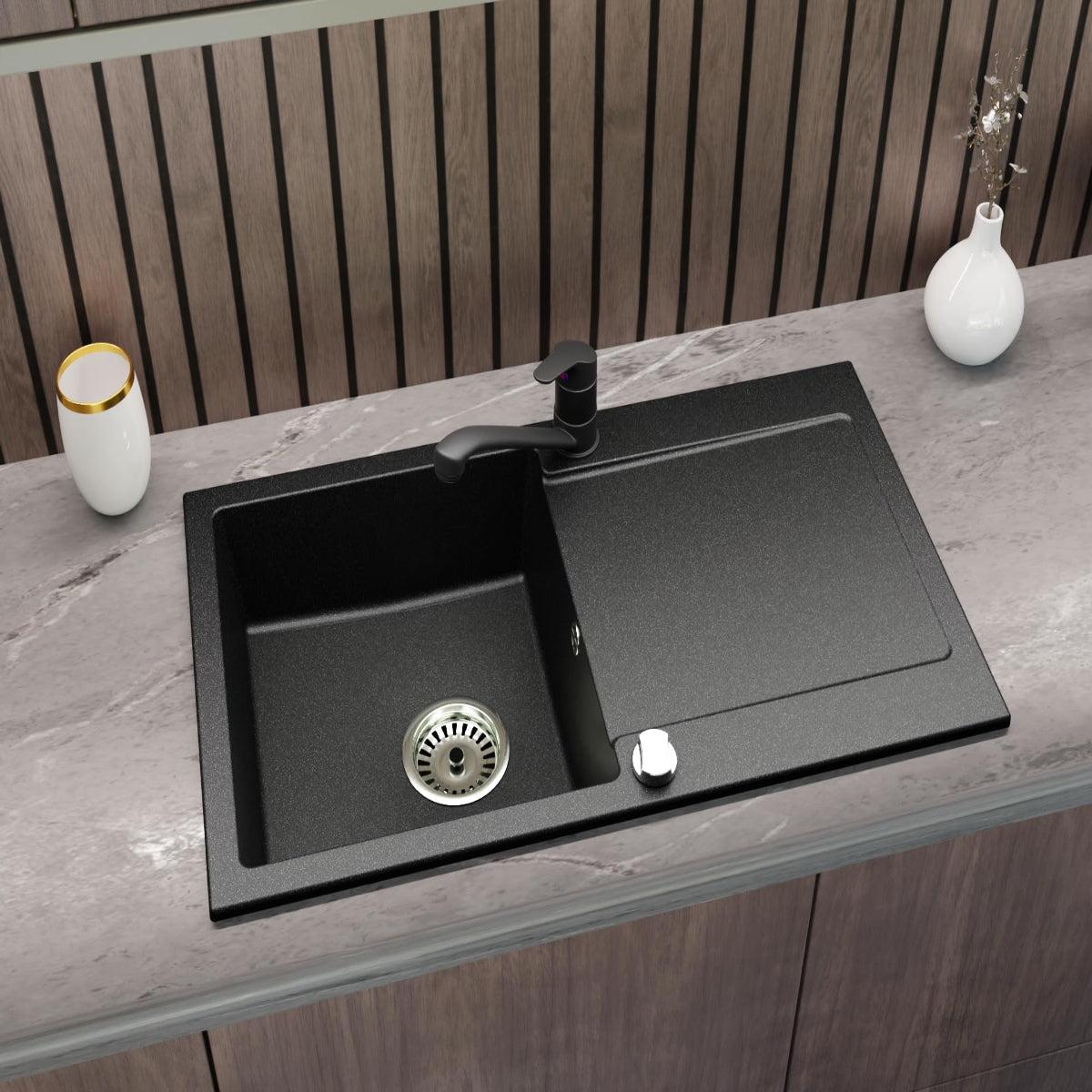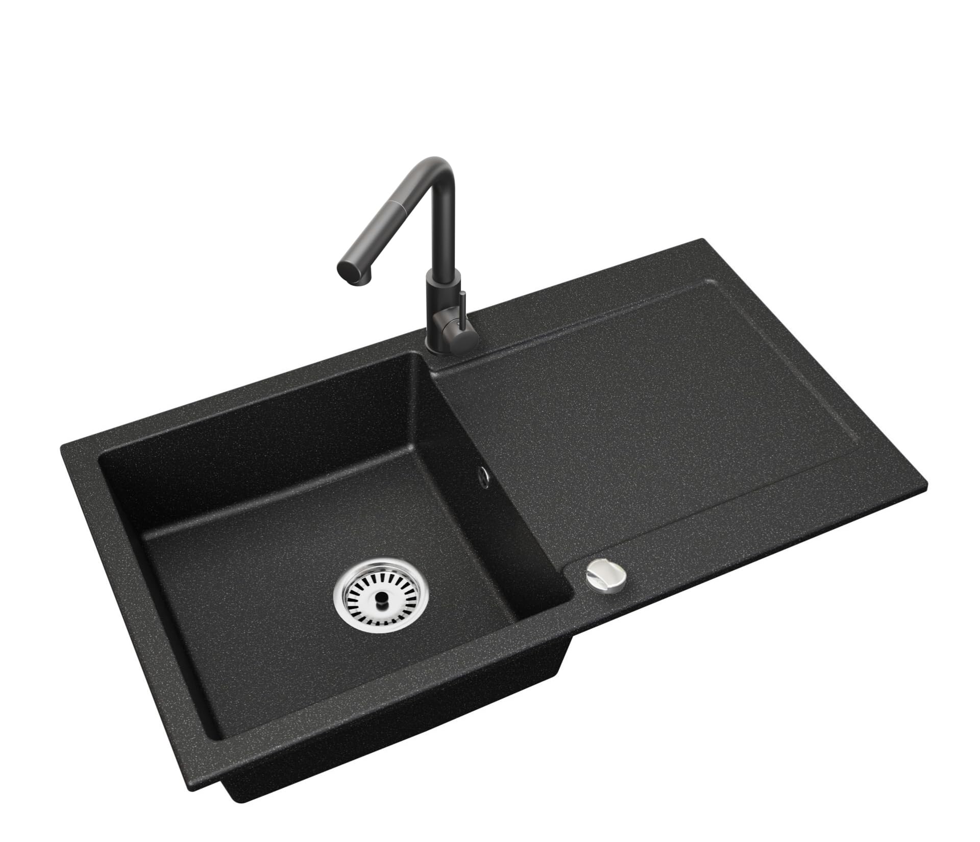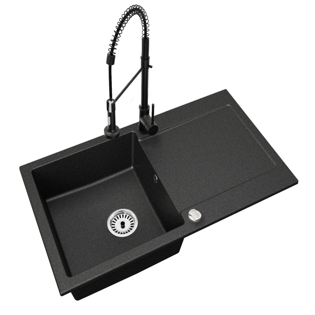 - 1 × Granitspüle „Element“ Schwarz Gesprenkelt (900 × 500 mm)