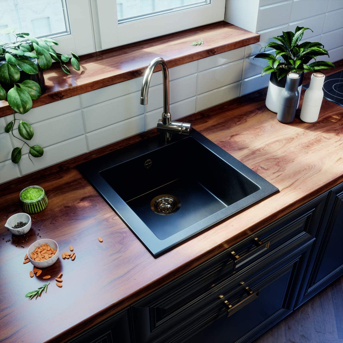 Granitspüle 48x50 + Armatur Cado – inkl. Siphon-Set