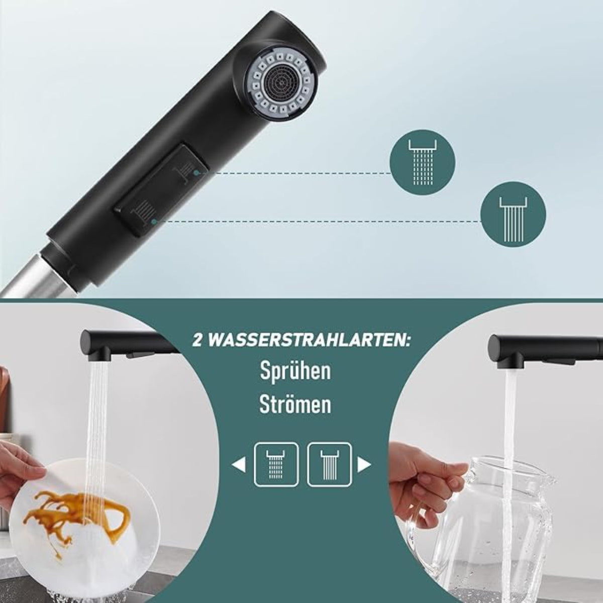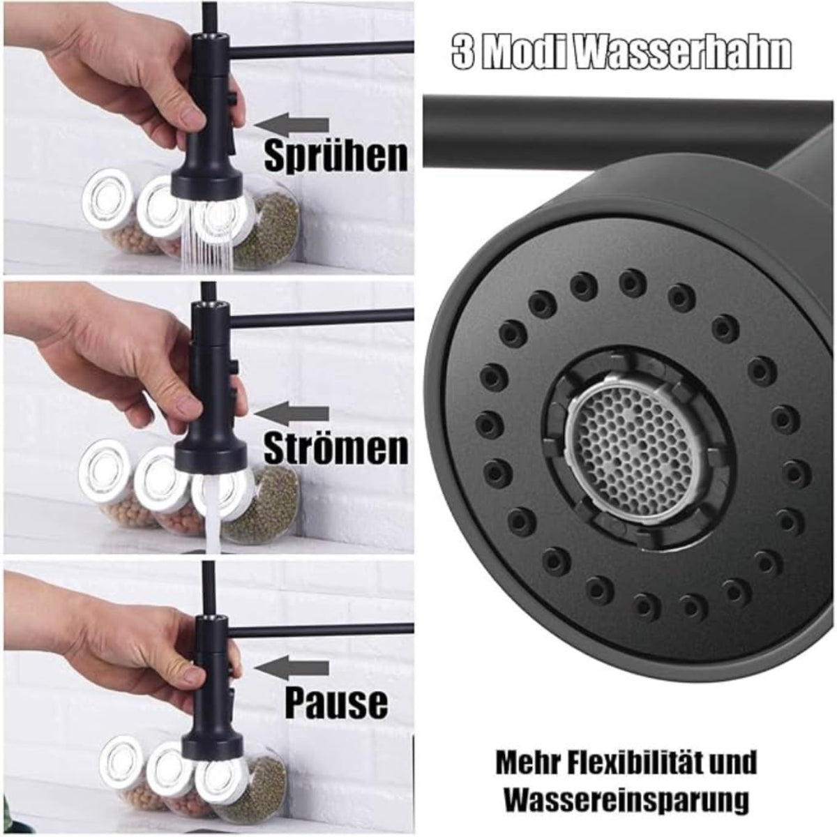 Drei Sprüharten und drehbarer Auslauf für maximale Flexibilität