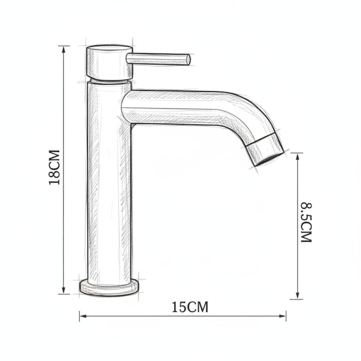 Gesamthöhe: 15,5 cm | Auslaufhöhe: 13,5 cm | Ausladung: 18,5 cm