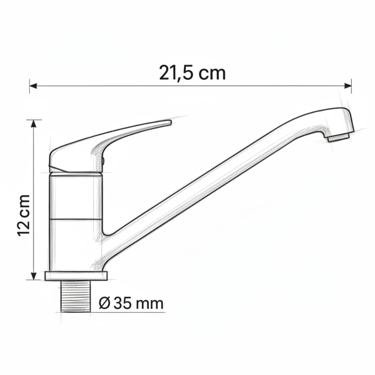 Gesamthöhe: 30 cm | Ausladung: 17 cm | Auslaufhöhe: 21,5 cm