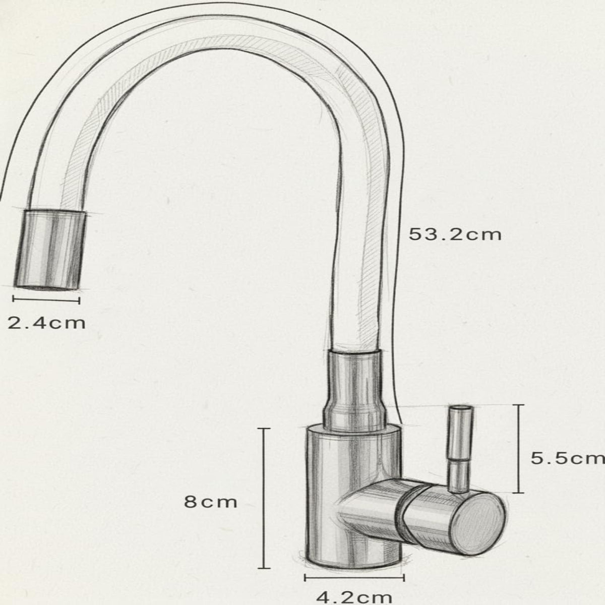 Gesamthöhe: 53,2 cm | Auslaufhöhe: 8 cm | Ausladung: ca. 25 cm