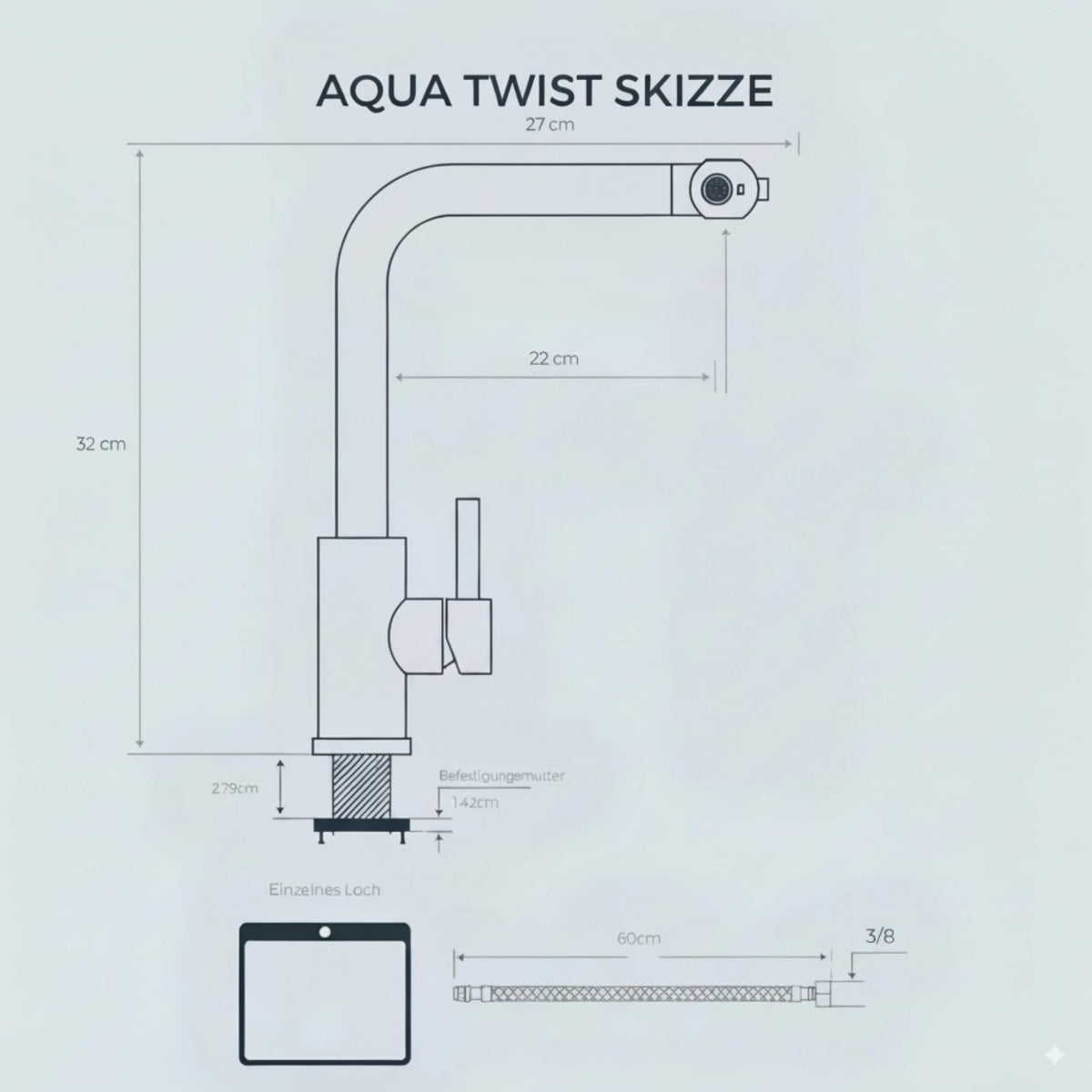 Gesamthöhe: 32 cm | Auslaufhöhe: 22 cm | Ausladung: 27 cm