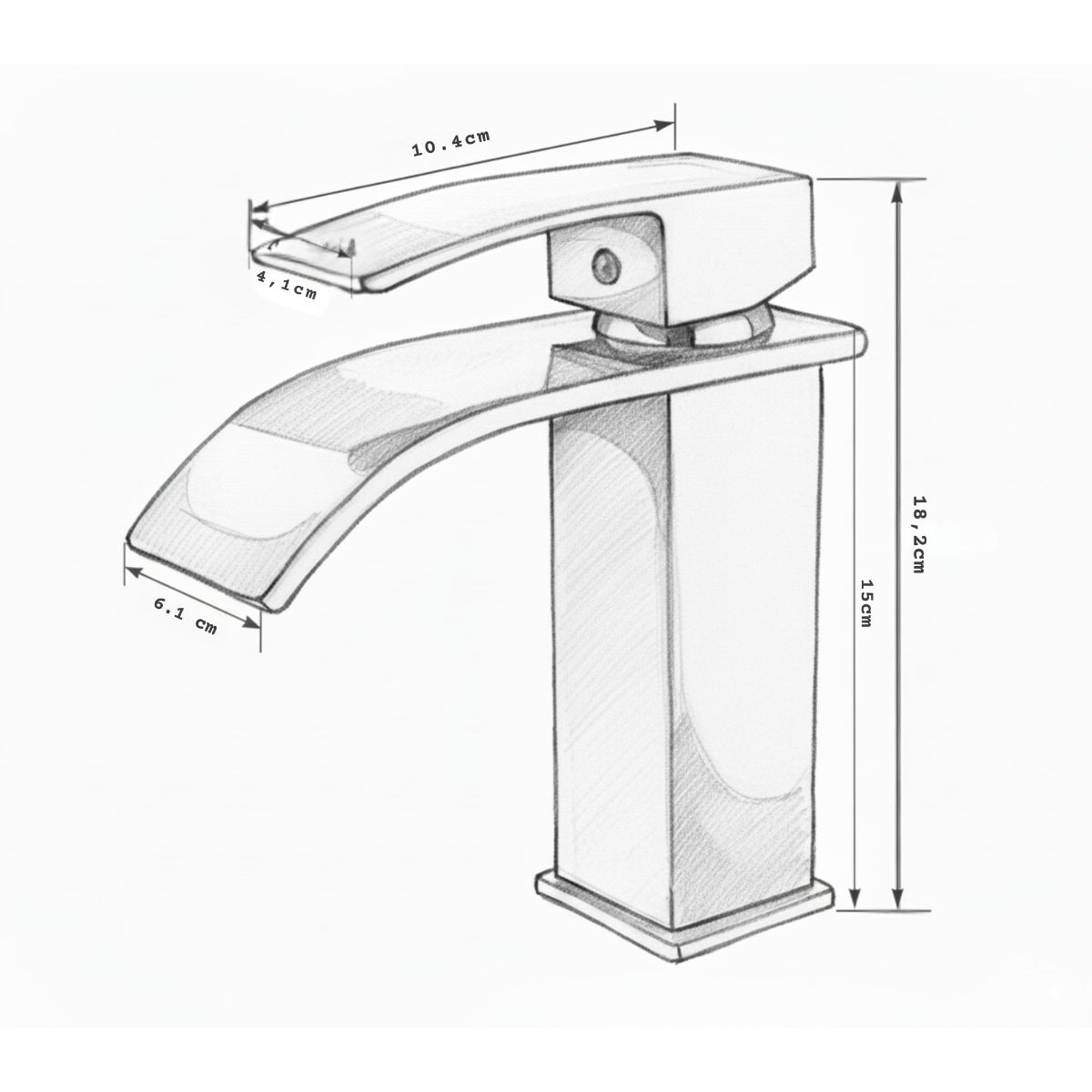 Gesamthöhe: 18,2 cm | Auslaufhöhe: 15 cm | Ausladung: 10,4 cm | Auslaufbreite: 6,1 cm