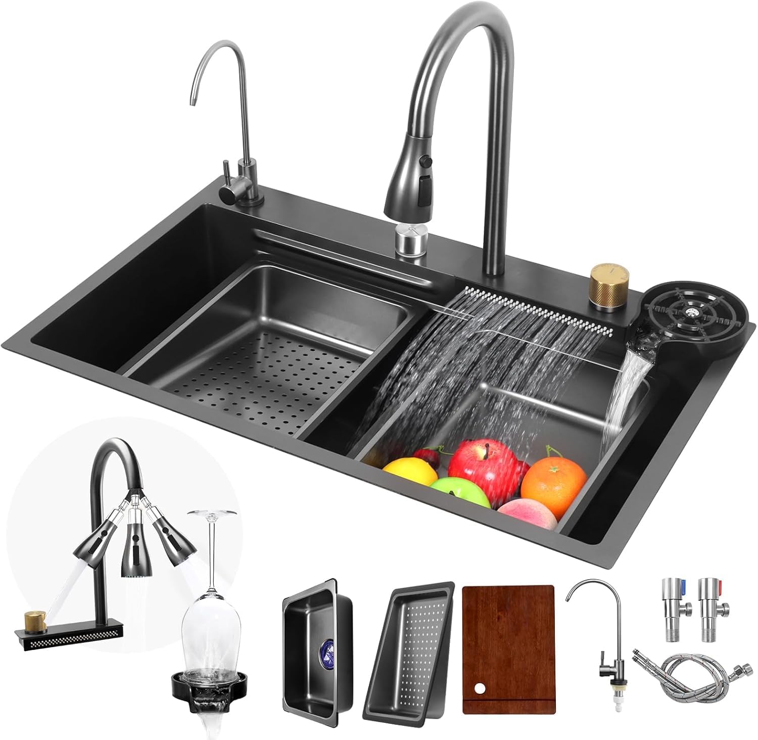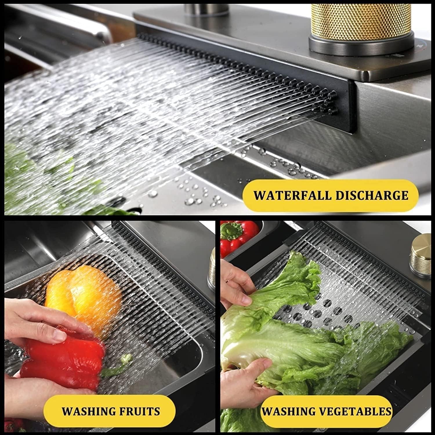 Neom Edelstahlspüle 75x45 cm mit 4-fach Wasserhahn, Wasserfall & Zubehör