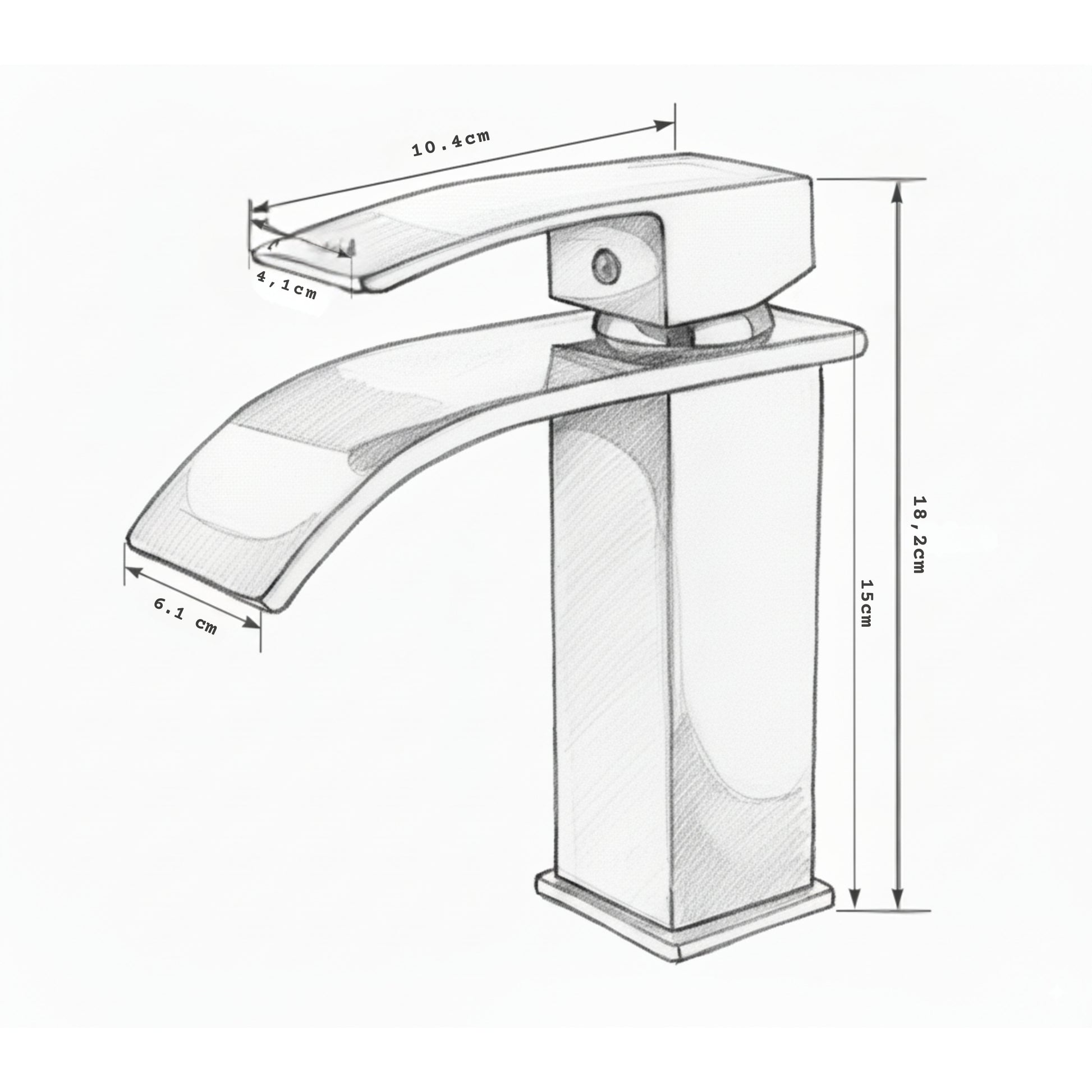 Die Faizee Home Wasserfall-Waschtischarmatur in Chrom vereint modernes Design mit präziser Technik. Der rechteckige Auslauf erzeugt einen gleichmäßigen, sanften Wasserfall, der nicht nur optisch überzeugt, sondern auch ein angenehm spritzarmes Nutzungserlebnis bietet. Ideal für stilvolle Badezimmer, Gäste-WCs oder moderne Waschbereiche.